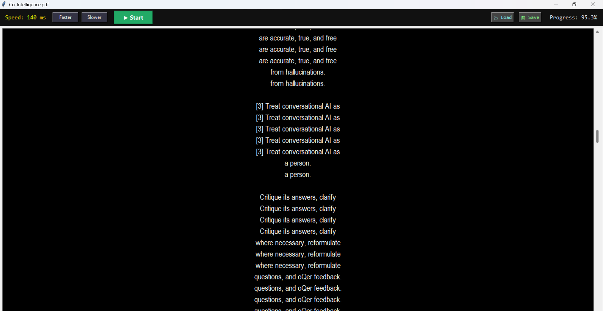 - Adjustable RSVP display: word chunks (1–several words), repeat/flash mode, auto-scroll speed
